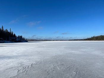 (a beautiful sunny day walking across the frozen lake)